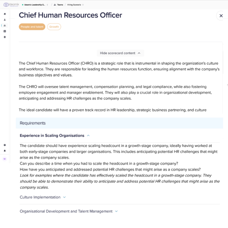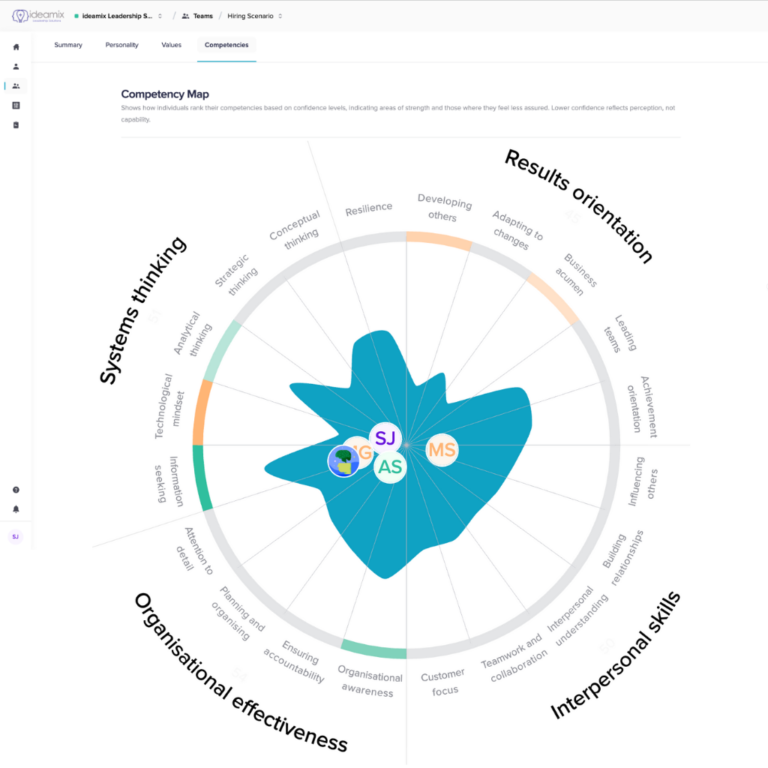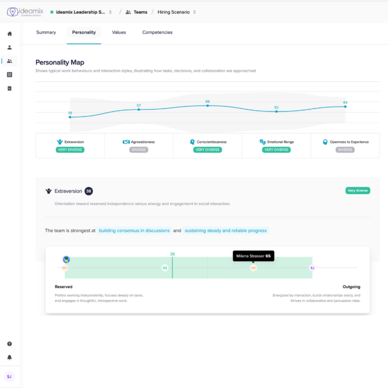 This is where ideamix Talent AI’s proprietary technology creates unprecedented value. Our AI engine – trained exclusively on structured, validated psychometric data (not generic large language models) – augments assessment results with your firm’s existing talent data: interview notes, deal track records, performance reviews, Peer/ LP/Board feedback, transaction experience, sector expertise. From complex assessment results to tangible, decision-ready outputs in minutes. Replace “I have a good feeling about this hire” with “Here’s the data showing how they’ll perform in this role and market environment.”